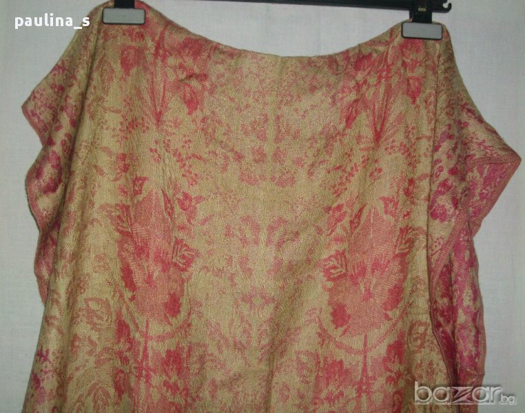 1. Дамски шал, подходящ за всички сезони, в охра и малинено чеpвено с флорален принт. Материята е памук и вискоза, купен е от Цюрих. 180см / 70см.