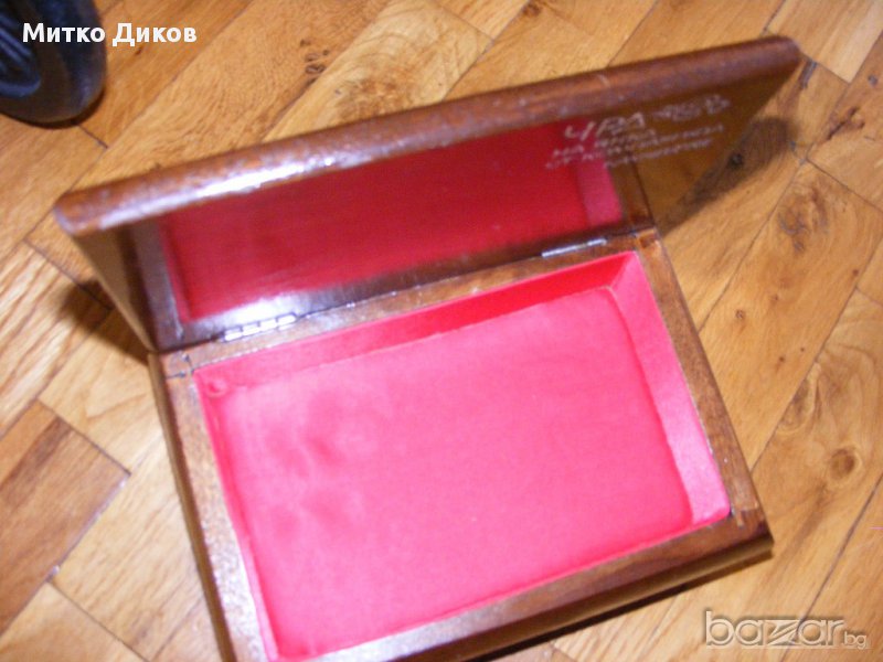 Голямата кутия е дървена стара от 1982г. което е видно от надпис вътре.Лакирана с пирографирана картинка от народният бит отгоре-цена-8лв..Изпращам с еконт с 20процента отстъпка.
