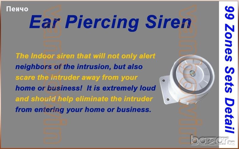 * Силни с 110 db а алармената система се задейства.