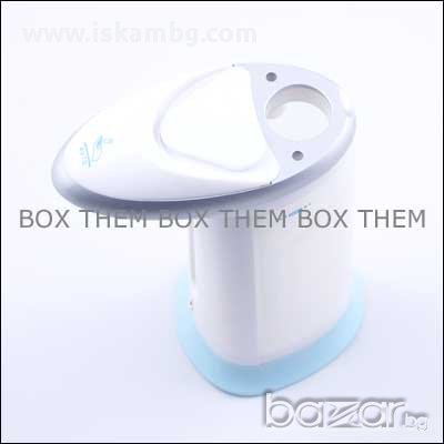 Уредът е изключително лесен и удобен за употреба. Поставяте батериите (устройството работи с 4 броя батерии ААА), пълните с течен сапун или препарат за съдове по Ваш избор и поставяте където пожелаете – на мивката, в банята или където на друго място ще Ви трябва.
