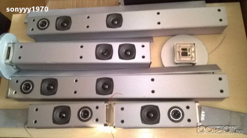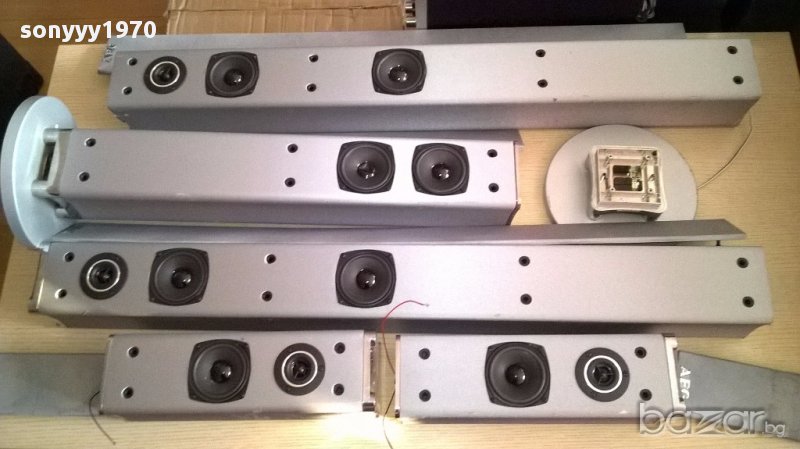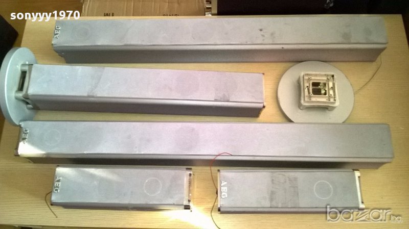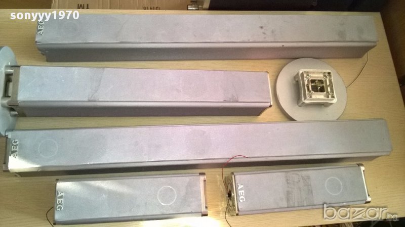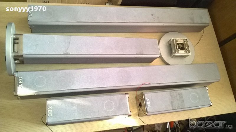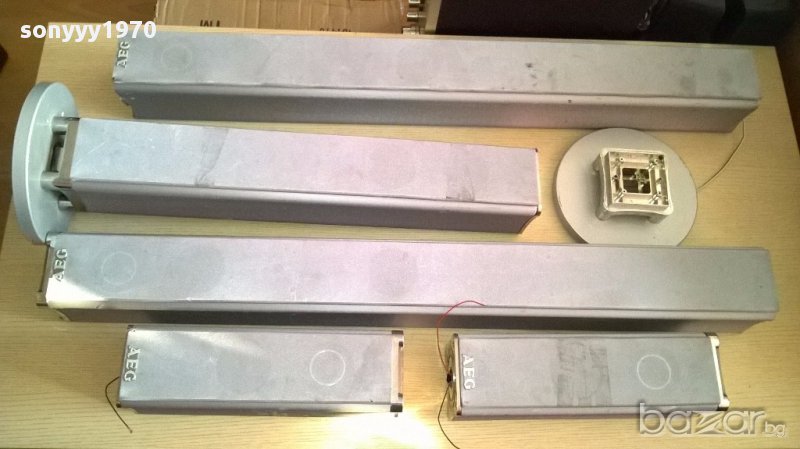 Aeg-5 броя колони колони-внос швеицария...94/11/11см-2бр+36/11/11см-2бр+ 67/11/11см-1бр-свирят идеално и са с решетки...говорителите са оригинални само имат забележки по външният вид но са на добра цена 125лв за всичките 5 и основата от снимките лицево и странично са ок...само основите и отгоре някои са без капачки-от днес 28.02.22г пращаме със спиди или еконт с преглед и тест след превод на капаро за куриерската услуга поради зачестили некоректни потребители-поръчки само тук в саита! по телефона и със смс не! краини цени! бартери не правиме! всеки ден нови неща-още 2-3 наши обяви тук