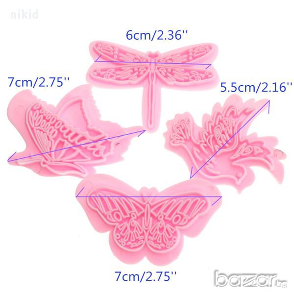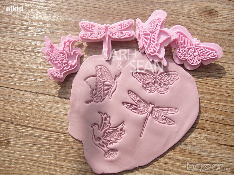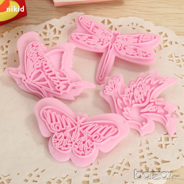 4 бр. форми насекоми пеперуда птичка за украса фондан торта резци 3д формички пластмаса → Обява 13375273