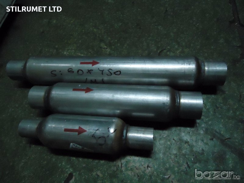 различни размери резонатори... полски / страхотно качество ... могат да се монтират на мястото на катализатора или като гърнета ... изправят резонансите и резливия звук на бензиновите