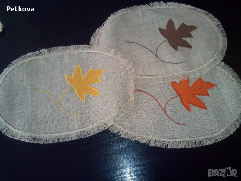 Продавам плетени покривки от 8 лв.(4.09 евро) (комплект от 2 малки) до 10 лв./бр. (5.11 евро) от по- големите (30-45 см в диаметър), както и бродирани покривки от 5 до 10 лв./ бр. (2.56 до 5.11 евро).