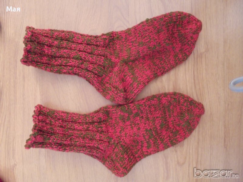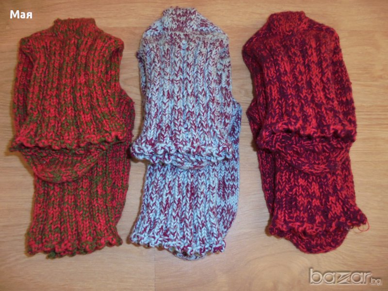 Нови топли вълнени чорапи плетени от истинска домашна вълна, подходящи за туризъм и за студените дни. Размер в неразпънато състояние 27-28 см. Цена 15 лв. броя