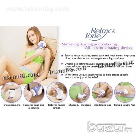 Релакс & Тон премахва излишните килограми без изморителни упражнения, тонизира отпуснатите мускули, масажира врата, раменете и гърба след изморителен ден,