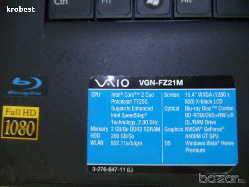 Sony Vaio vgn-fz21m НЯМА ЗАРЯДНО, НЯМА БАТЕРИЯ! НЯМА ХАРД ДИСК, МАТРИЦА РАБОТЕЩА В ПЕРФЕКТНО СЪСТОЯНИЕ 15.4 инча - 30лв.