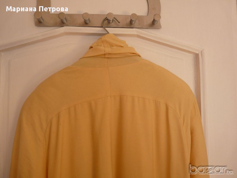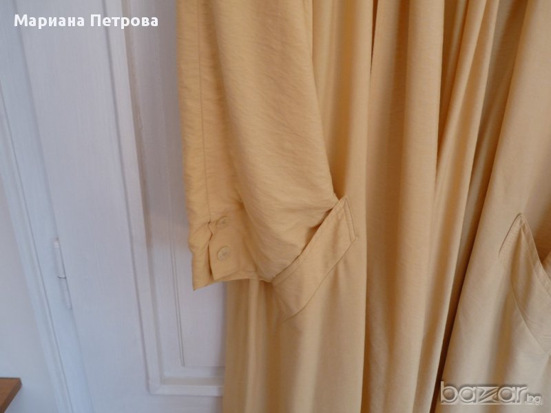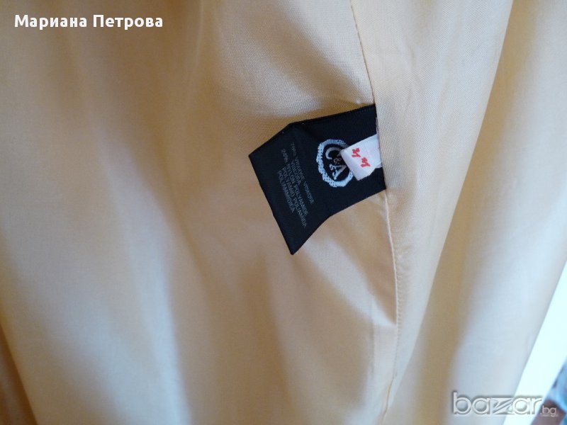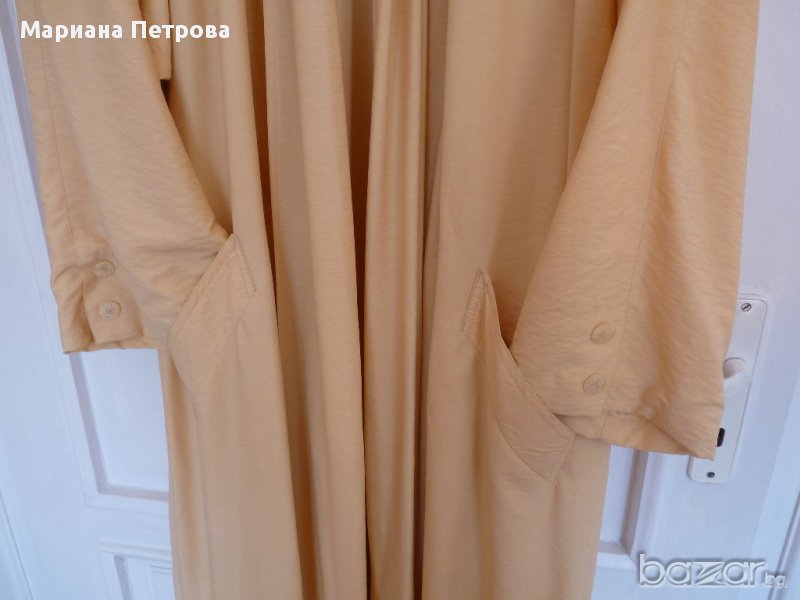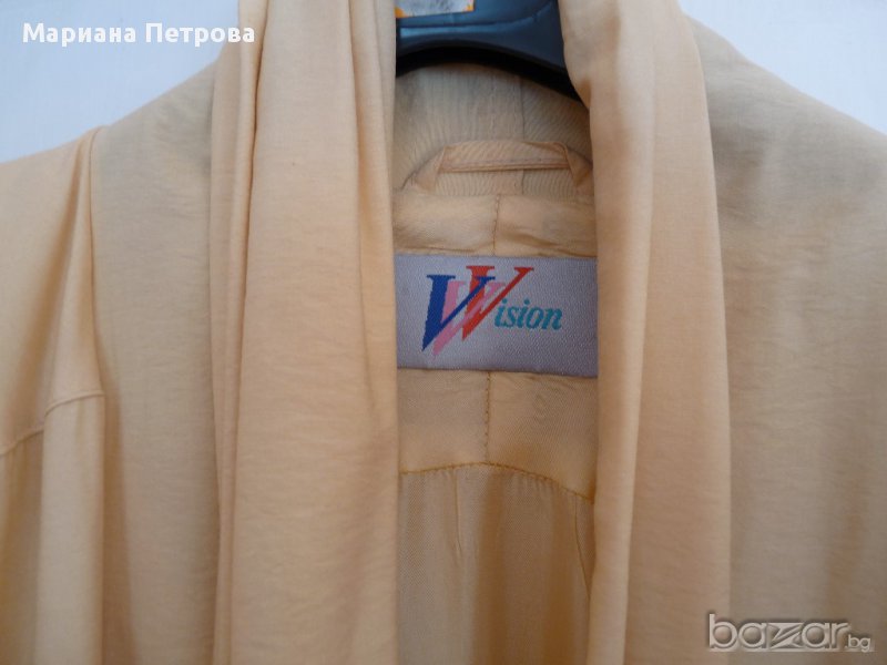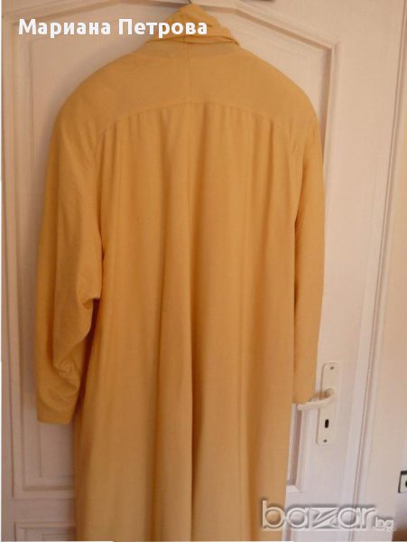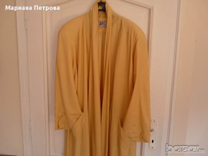 Дамско немско марково манто №44 с шал яка по цялата дължина на мантото. Състав: 75% вискоза и 25% полиамид. Този сезон се използва много от дизайнерите. Може смело да се избере като единствен цвят на облеклото и е особено модерно да носите дълго манто или рокля до пода, както отбелязват стилистите.