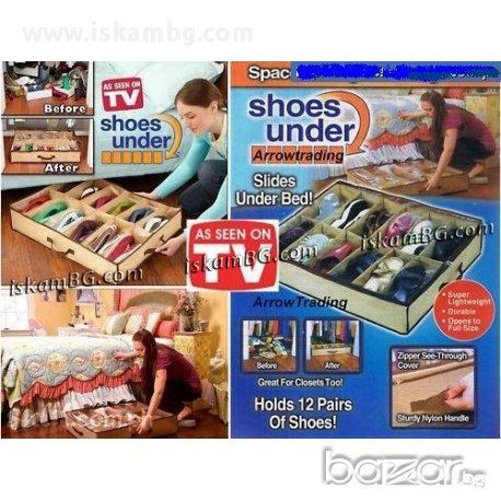 Shoes Under e удобен органайзер позволява подреждането и затварянето на 12 чифта обвки - далеч от буболечки и прах.