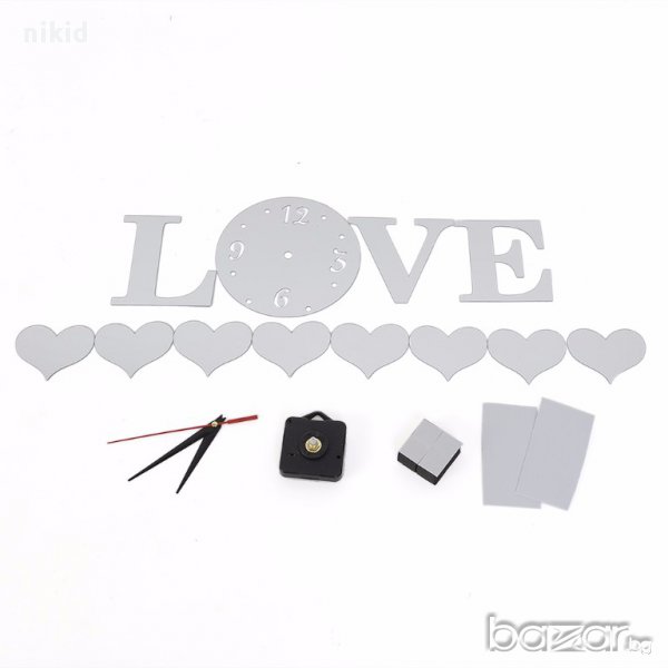 4 цвята 3D сърца LOVE самозалепващ огледален стенен часовник уникален атрактивен дизайн стена