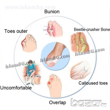 Облекчете болката в палеца и малкото пръстче със силиконов разделител за пръстите на краката. Този иновативен продукт е изработен от тънък и мек силикон, който нежно помага за изправянето на притискането от обувките пръсти на краката и за предотвратяването на подутината върху ставата в основата им. Палеца е изправен, а малкото пръстче е облекчено.