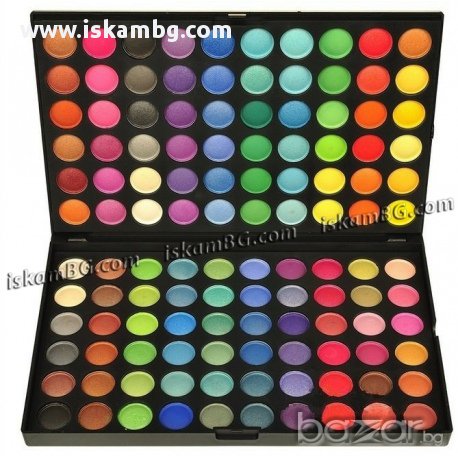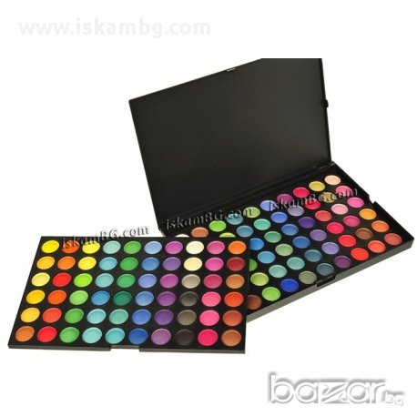 25.00 лв - Голяма Професионална палитра 120 цвята, комбинация от матови и сенки с блясък. Нова, палитрата е с изключително красиви и наситени цветове,разделени на 2 сектора по 60 цвята. Подходяща за професионална и лична употреба.Размери на палитрата 23 cм x 15cм x 1.7cм
