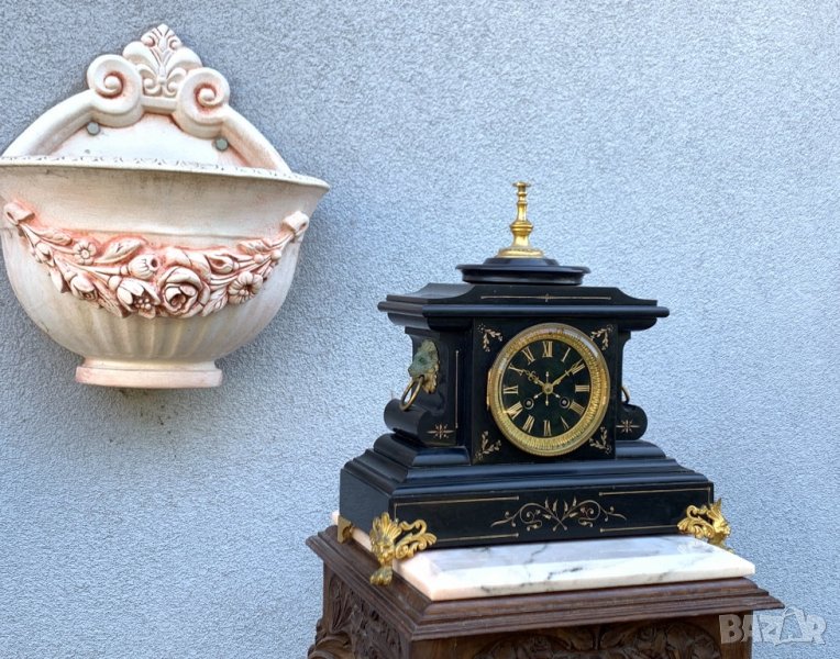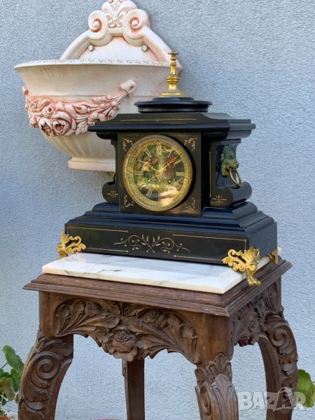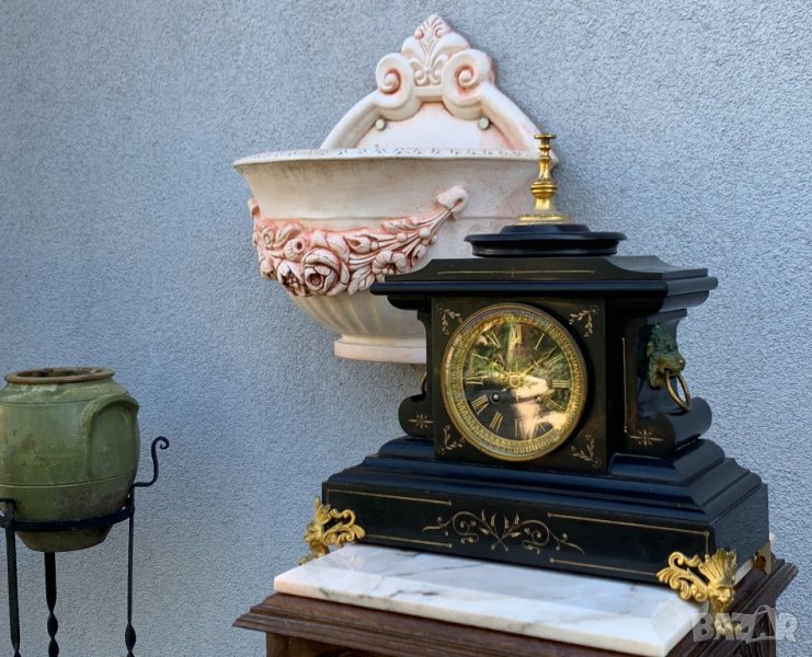 Каминен часовник от черен мрамор и позлата → Обява 13545310