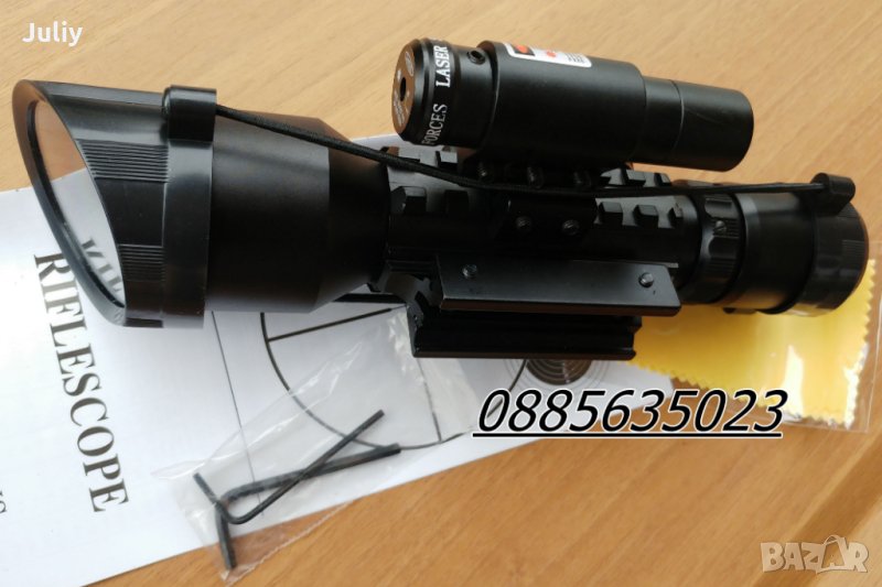 Странично е разположен лазера, който се включва независимо от просветката на оптиката. Ако желаете да използвате лазера натискате бутона за включване, който е отзад на капачката и през оптиката можете да наблюдавате червената точка или директно без оптика.