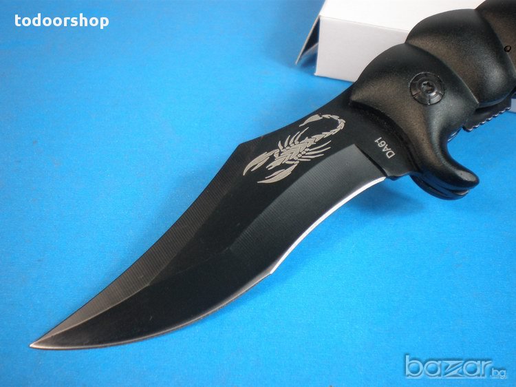 Описание: Сгъваем нож скорпион Обща дължина:22.5мм Дължина на острието:95мм Дължина надръжка:130 мм