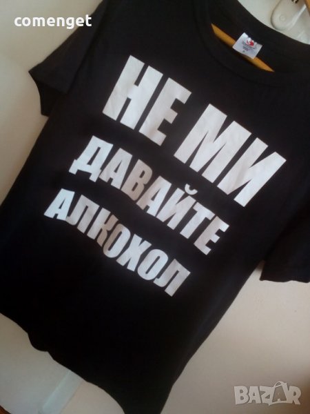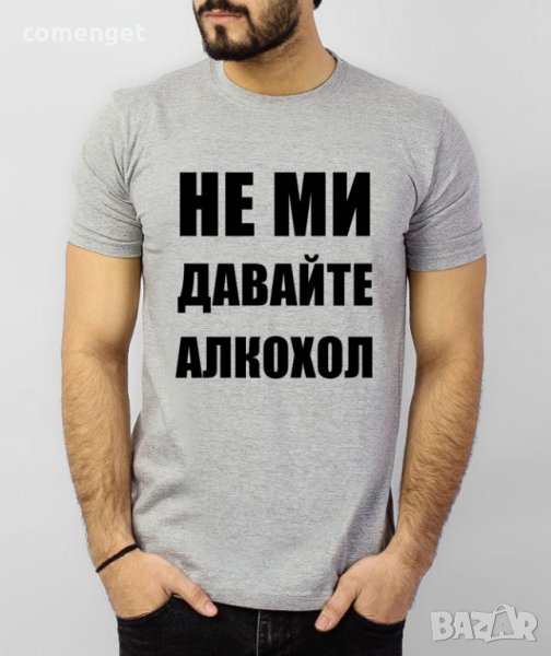 Мъжка тениска ''НЕ МИ ДАВАЙТЕ АЛКОХОЛ'', достъпна в над 10 цвята! Поръчай модел с ТВОЯ идея!
