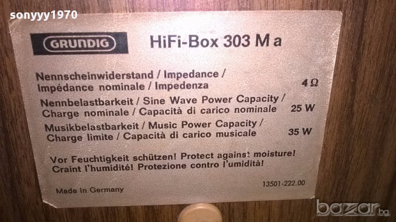 Grundig hi-fi box 303ma-made in germany-внос швеицария...маркови немски ретро тонколони...без ремонти и забележки...внесени са вчера от швеицария и всичко им е оригинално...свирят прекрасно и са много тежки няма вдигане едната а двете заедно е трудно-от днес 28.02.22г пращаме със спиди или еконт с преглед и тест след превод на капаро за куриерската услуга поради зачестили некоректни потребители-поръчки само в тук в саита! по телефона и със смс не! краини цени! бартери не правиме! всеки ден нови неща-още над 18000 обяви тук
