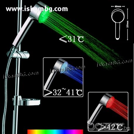 Променя цветовете в съответствие с температурата на водата.