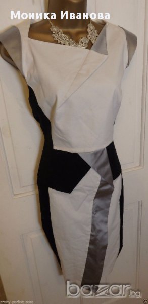 KAREN MILLEN, супер официална рокля, размер:EU42/UK12/US8, обличана е два пъти- отлично състояние, състав на плата: сатен и еластан, дължината е до коляното, с пълна подплата, оригинална и супер качествена, колекция 2022г., с декоративен панел на кръста. Изпращам до офис на Еконт - доставката ще струва около 6 лв.