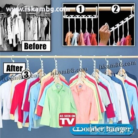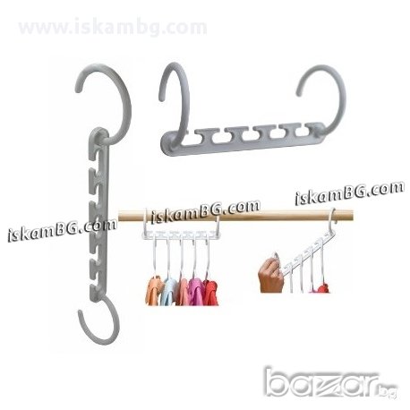 Triple Closet Space e държач за закачалки, който поема цели пет закачалки с дрехи, а заема място за една. Той е достатъчно здрав, за да задържи 5 палта, ризи или каквото пожелаете.