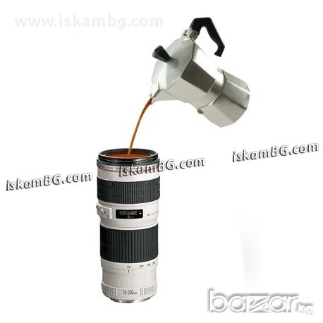Чрез добавяне на някои малки детайли по дизайна на тази нестандартна термо чаша, е постигната узадъчаваща прилика с истински обектив за камера. Двата силиконови пръстена от външната страна на тази чаша са интерпретация на въртящите части на обектива за настройка на фокуса и разстоянията, а прозрачният й капак, през който може да погледнете кафето си, имитира оптична леща. За разлика от лещата на истинския обектив, която трябва да пропуска колкото може повече светлина, тази служи за точно обратното – през нея ще виждате кафето си, но капакът – леща няма да пропусне и капчица от течността!