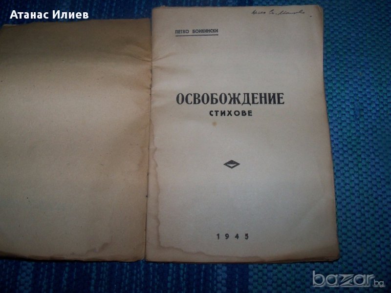 Интересна стихосбирка на Петко Бойкински "Освобождение. Книгата е издадена през 1945г., вероятно на собствени разноски - самиздат. Книгата е с меки корици, 32 стр.