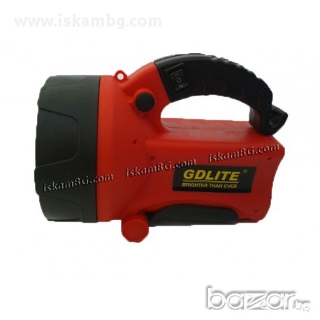 Мощен LED фенер GDLITE GD-2621 с 10W светодиоден /LED/ излъчвател CREE XM-L T6 и вградена акумулаторна батерия със зарядни устройства за 220V и автомобил.