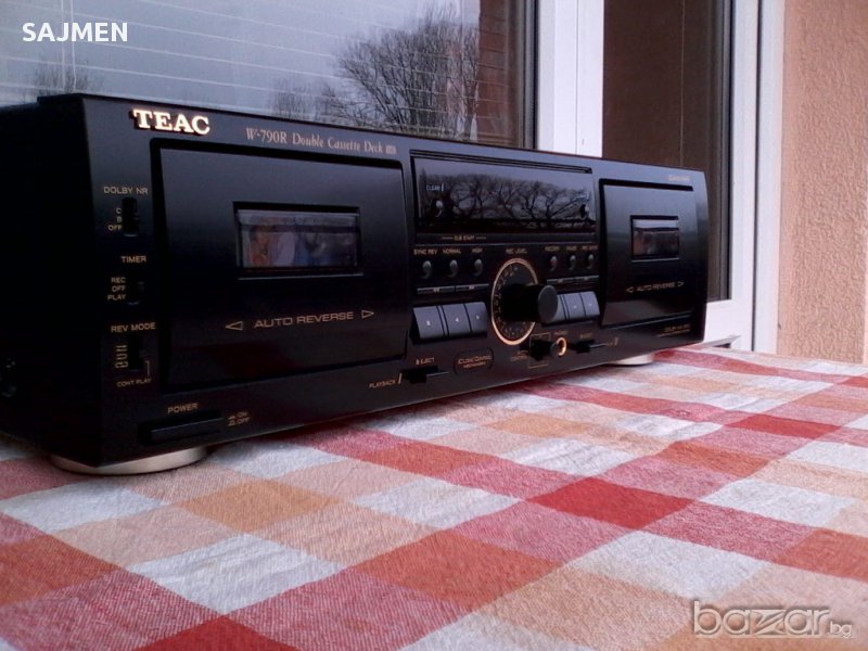 продавам дек Teac w 790r декът е неразличим от нов с оригинално дистанционно с две касетки auto reverse идвете гнезда са ауто реверс декъте с dolbi b.c nr hx pro sync rev–pitchcontrol за оборотите има бързи и бавни скорости за запис запис 1:1 глави,мотори,тонролки,ремъци в пълен оригинал декът е перфектен-ДИСТАНЦИОННОТО Е ОЩЕ С НАЙЛОЧЕТО ПО КОПЧЕТАТА .ЦЕНА,999.ЛВ