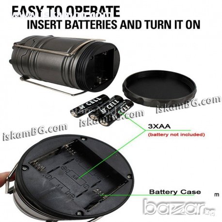 Соларна къмпинг лампа с USB зарядно - код 5800