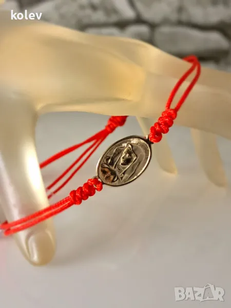 златна Богородица, ръчна изработка от жълто 14 каратово злато, проба 585. качествен червен конец грамаж на Богородицата ок.0.55 грама