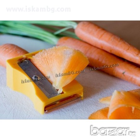 Острилка за моркови – невероятно симпатична, развеселяваща и потребна вещ. С вграденото ножче за белене, може да очистите морков, ябълка, краставица или да смъкнете кората на каквото друго си пожелаете. А със самото ножче на острилката ще постигнете невероятно тънки ивички морков, уникална декорация за гарнитурата на всякакви ястия. Удобна за работа, с ергономична форма и награпена повърхност в участъка за хващане, острилката за моркови ще бъде любимият ви уред за обработка на зеленчуци при подготовка на салати, гарнитури и ордьоври.