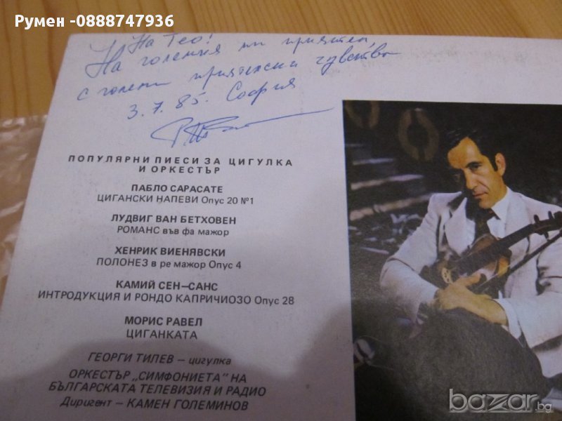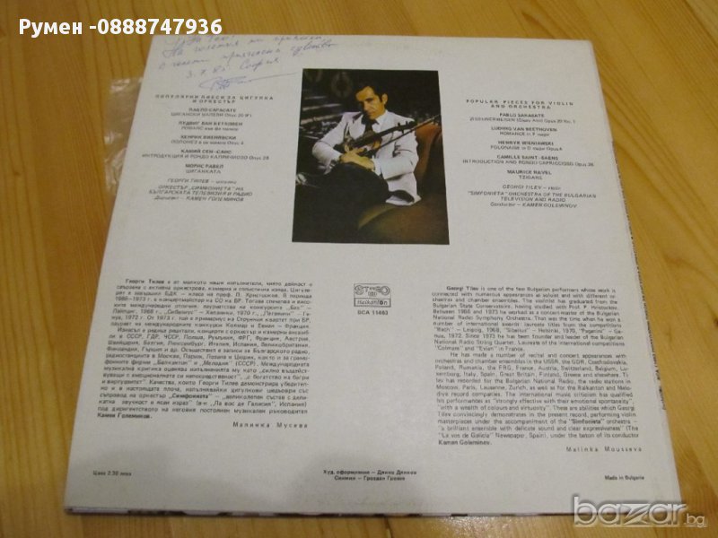 Рядка Голяма грамофонна плоча популярни песни за цигулка и оркестър Георги Тилев автограф