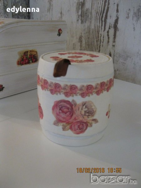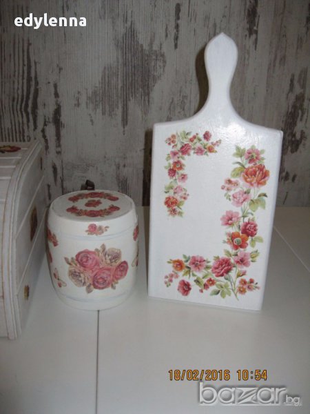 Кутия за хляб, дъска за рязане, бурканчета за подправки декупаж → Обява 13627751