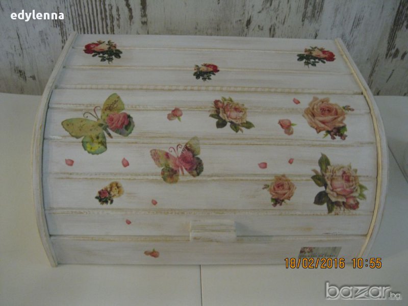 Дървена кутия за хляб направен с техниката на декупаж - изработка 3 дни, цена 48лв.