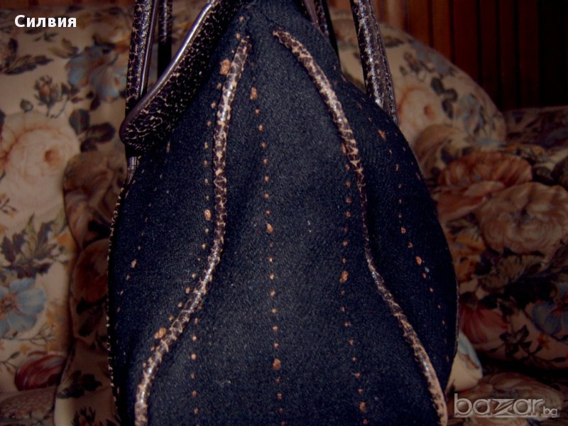 Уникална чанта, комбинация от два вида плат и кожа.