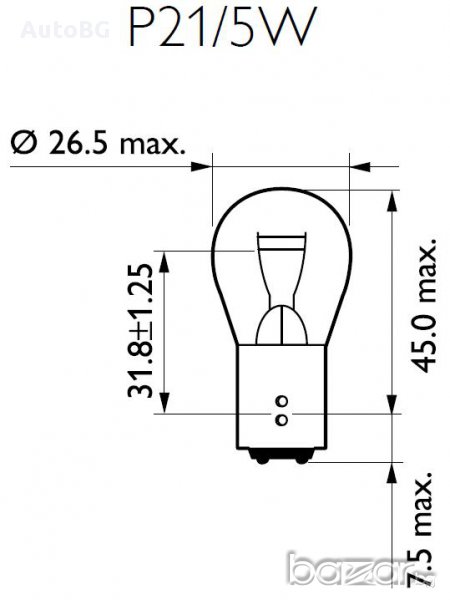 Лампа Philips P21 / 5 W Vision / две светлини → Обява 13658926