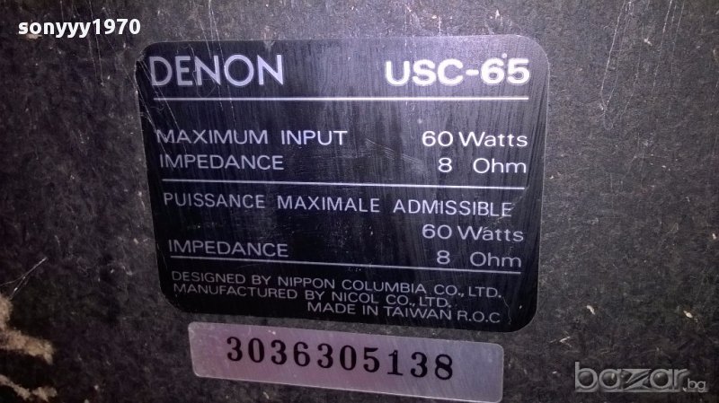 Denon usc-65 8ohms/60watts-1брои-внос швеицария....оригинална трилентова...без ремонти и всички говорители свирят и са оригиналните и...свири прекрасно въпреки че басовият трябва да се позалепи по гънката че леко се е отлепила-поръчки само тук в саита! от днес 28.02.22г пращаме със спиди или еконт с преглед и тест след превод на капаро за куриерската услуга поради зачестили некоректни потребители-поръчки само в тук в саита! по телефона и със смс не! краини цени! бартери не правиме! всеки ден нови неща-още над 18000 обяви тук
