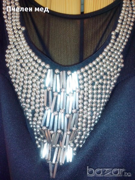 Както се вижда забележката е на колието, че има обелено,но според мен може да се махнат тези неща и да се сложи едно красиво колие. От кръста надолу се разкроява леко, отзад е малко по-дълга. Обличана веднъж,но вече не ми става,иначе бих си я оправила :)
