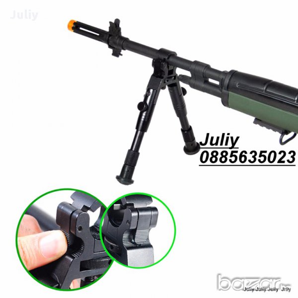 - дизайнът на двунога е сгъваем с регулируема височина.