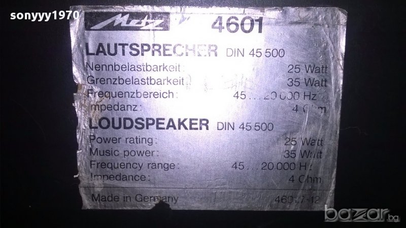 Metz 4601 made in germany-2броя внос швеицария...маркови немски колони...много тежки и масивни...свирят уникално...без ремонти и забележки...внесени са вчера от швеицария-пращаме със спиди или еконт с преглед и тест след превод на капаро за куриерската услуга поради зачестили некоректни потребители-поръчки само тук в саита! по телефона и със смс не! краини цени! бартери не правиме! ПАРИ НЕ ВРЪЩАМЕ! всеки ден нови неща-още 2-3 наши обяви тук