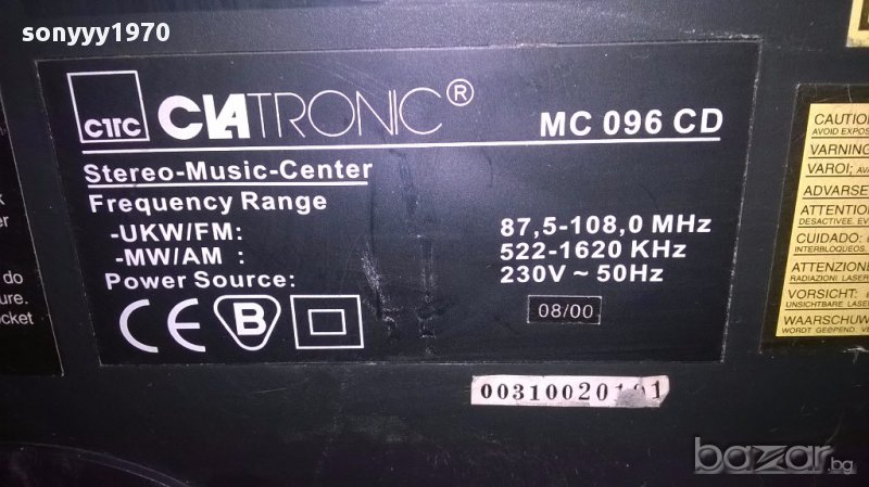 Clatronic mc096cd-tuner/rds+cd+amplifier+aux-внос швеицария...свири много яко...тунер с рдс и усилвател с изходи за 2 колони и вход аукс...цд за 3 диска и моторизиран капак...внесена е вчера от швеицария-поръчки само тук в саита! от днес 28.02.22г пращаме със спиди или еконт с преглед и тест след превод на капаро за куриерската услуга поради зачестили некоректни потребители-поръчки само в тук в саита! по телефона и със смс не! краини цени! бартери не правиме! всеки ден нови неща-още над 18000 обяви тук