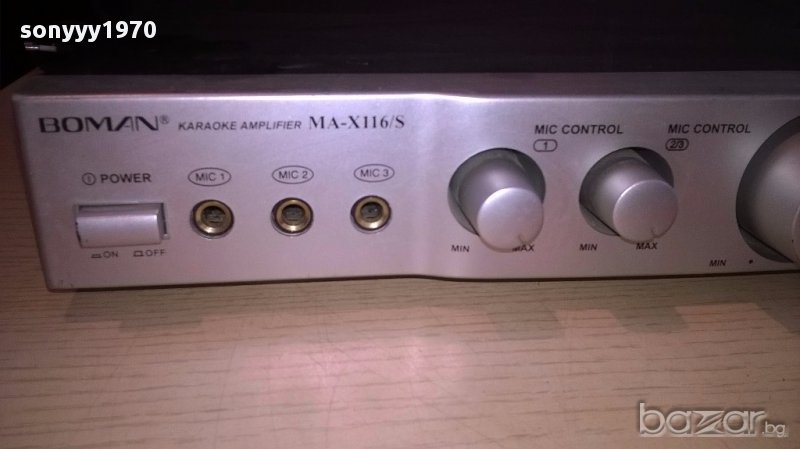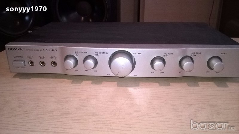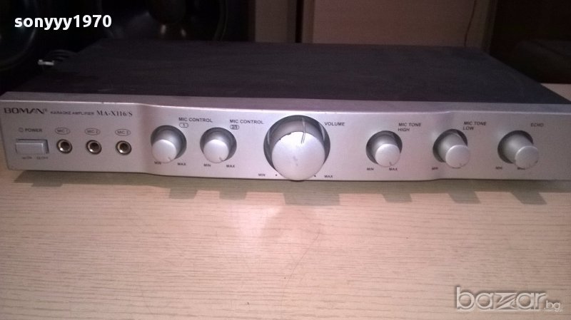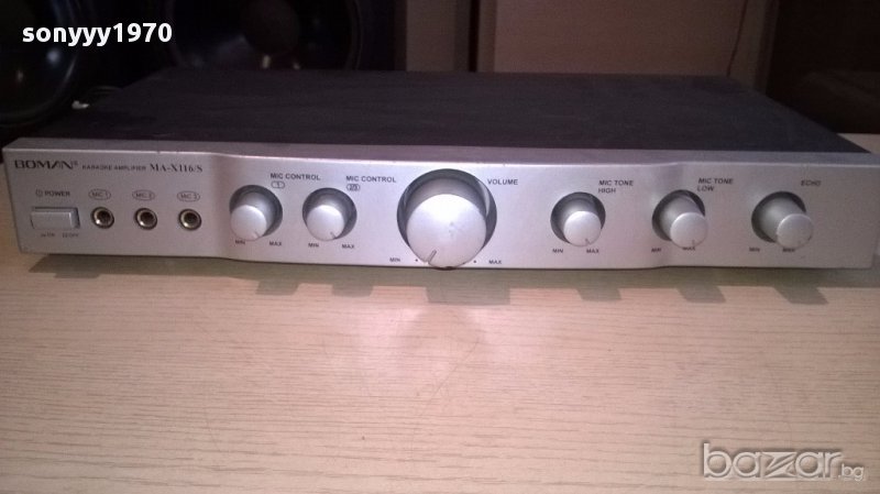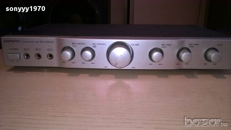 Boman ma-x116s stereo karaoke amplifier-внос швеицария...работи идеално и е без ремонти...нов внос...има 3 микрофонни входа...аудио и изходи за 2 колони...има и ехо и други-поръчки само тук в саита! от днес 28.02.22г пращаме със спиди или еконт с преглед и тест след превод на капаро за куриерската услуга поради зачестили некоректни потребители-поръчки само в тук в саита! по телефона и със смс не! краини цени! бартери не правиме! всеки ден нови неща-още над 18000 обяви тук