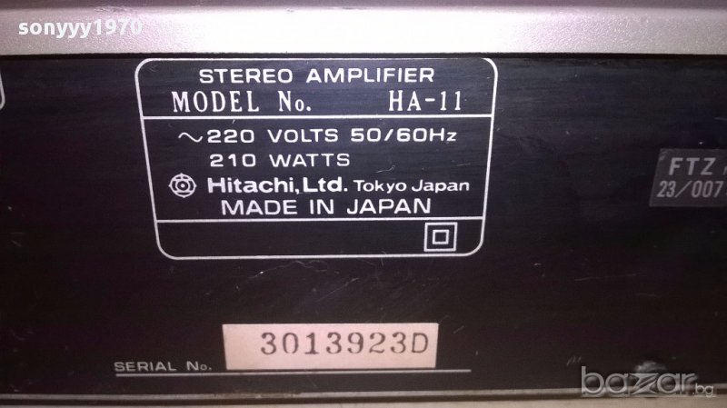 Hitachi ha-11 amplifier made in japan-210watts-внос швеицария...истински японски усилвател...внесен вчера от швеицария...без ремонти и забележки...свири уникално и има изходи за 4 колони-поръчки само тук в саита! от днес 28.02.22г пращаме със спиди или еконт с преглед и тест след превод на капаро за куриерската услуга поради зачестили некоректни потребители-поръчки само в тук в саита! по телефона и със смс не! краини цени! бартери не правиме! всеки ден нови неща-още над 18000 обяви тук