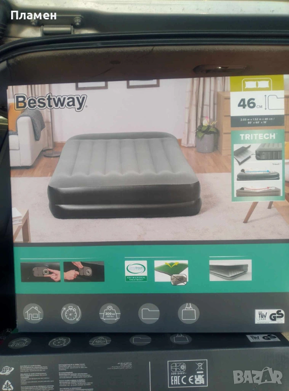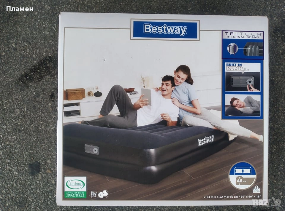 НАДУВАЕМ двоен ДЮШЕК легло, матрак спалня Bestway® Tritech  с ел.помпа 220 V 203 cm x 152 cm x 46 cm, снимка 1 - Спални и легла - 13694113 НАДУВАЕМ двоен ДЮШЕК легло, матрак спалня Bestway® Tritech  с ел.помпа 220 V 203 cm x 152 cm x 46 cm, снимка 2 - Спални и легла - 13694113 НАДУВАЕМ двоен ДЮШЕК легло, матрак спалня Bestway® Tritech  с ел.помпа 220 V 203 cm x 152 cm x 46 cm, снимка 3 - Спални и легла - 13694113 НАДУВАЕМ двоен ДЮШЕК легло, матрак спалня Bestway® Tritech  с ел.помпа 220 V 203 cm x 152 cm x 46 cm, снимка 4 - Спални и легла - 13694113 НАДУВАЕМ двоен ДЮШЕК легло, матрак спалня Bestway® Tritech  с ел.помпа 220 V 203 cm x 152 cm x 46 cm, снимка 5 - Спални и легла - 13694113 НАДУВАЕМ двоен ДЮШЕК легло, матрак спалня Bestway® Tritech  с ел.помпа 220 V 203 cm x 152 cm x 46 cm, снимка 6 - Спални и легла - 13694113 НАДУВАЕМ двоен ДЮШЕК легло, матрак спалня Bestway® Tritech  с ел.помпа 220 V 203 cm x 152 cm x 46 cm, снимка 7 - Спални и легла - 13694113 НАДУВАЕМ двоен ДЮШЕК легло, матрак спалня Bestway® Tritech  с ел.помпа 220 V 203 cm x 152 cm x 46 cm, снимка 8 - Спални и легла - 13694113 НАДУВАЕМ двоен ДЮШЕК легло, матрак спалня Bestway® Tritech  с ел.помпа 220 V 203 cm x 152 cm x 46 cm, снимка 9 - Спални и легла - 13694113 НАДУВАЕМ двоен ДЮШЕК легло, матрак спалня Bestway® Tritech  с ел.помпа 220 V 203 cm x 152 cm x 46 cm, снимка 10 - Спални и легла - 13694113 НАДУВАЕМ двоен ДЮШЕК легло, матрак спалня Bestway® Tritech  с ел.помпа 220 V 203 cm x 152 cm x 46 cm, снимка 11 - Спални и легла - 13694113 НАДУВАЕМ двоен ДЮШЕК легло, матрак спалня Bestway® Tritech  с ел.помпа 220 V 203 cm x 152 cm x 46 cm, снимка 12 - Спални и легла - 13694113 НАДУВАЕМ двоен ДЮШЕК легло, матрак спалня Bestway® Tritech  с ел.помпа 220 V 203 cm x 152 cm x 46 cm, снимка 13 - Спални и легла - 13694113 1/13