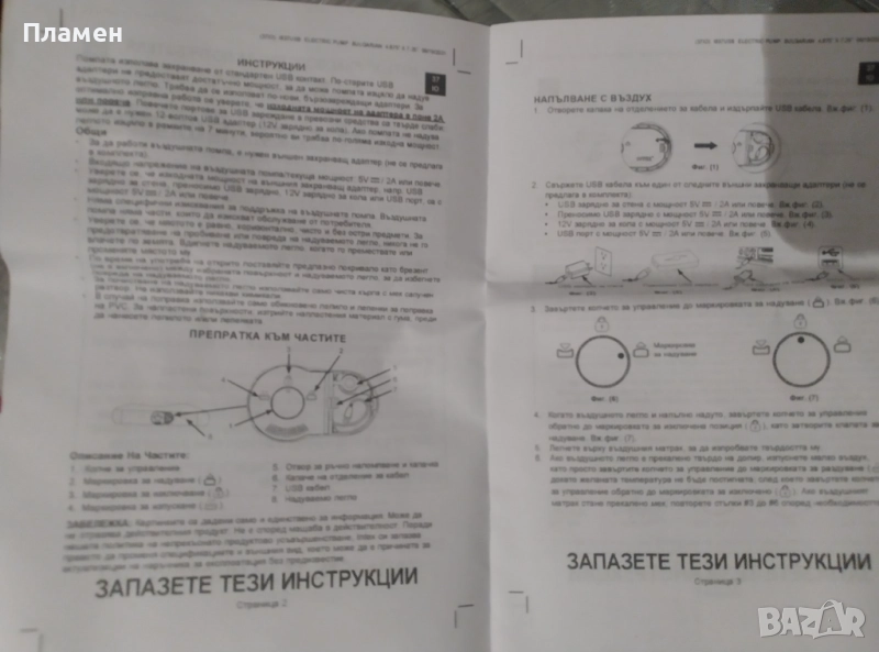 • Вградена помпа захранвана от USB, което се включва във външно зарядно за