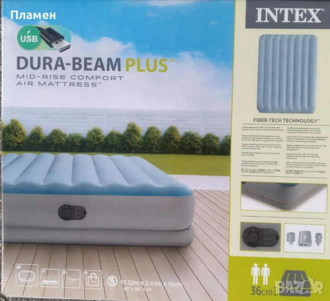 НАДУВАЕМ двоен ДЮШЕК легло, матрак спалня COMFORT Dura-Beam Plus 203X152X36 СМ с USB помпа