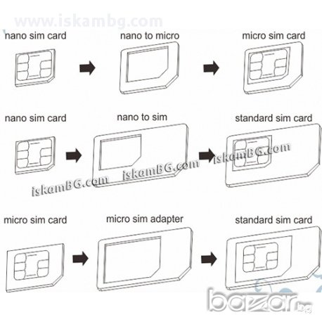 НАНО към МИКРО СИМ карта ( nano sim - micro sim)