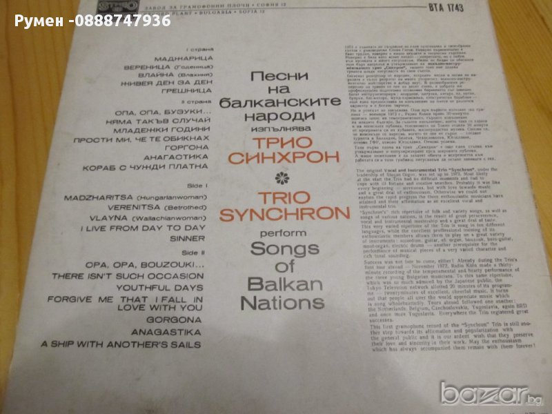 Голяма Грамофонна плоча  Трио Синхрон - изд.71г.- за ценители и колекционери !, снимка 1 - Грамофонни плочи - 13695848 Голяма Грамофонна плоча  Трио Синхрон - изд.71г.- за ценители и колекционери !, снимка 2 - Грамофонни плочи - 13695848 Голяма Грамофонна плоча  Трио Синхрон - изд.71г.- за ценители и колекционери !, снимка 3 - Грамофонни плочи - 13695848 1/3