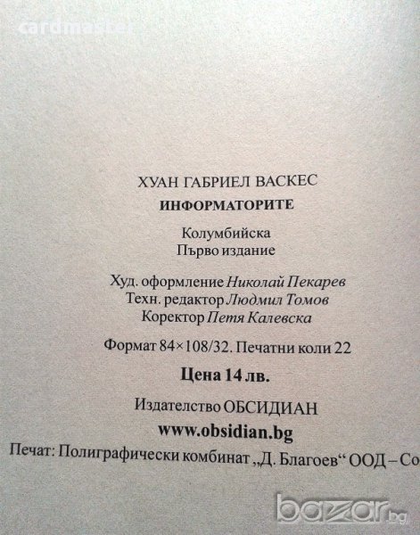 Хуан Габриел Васкес – „Информаторите” ; меки корици; 2010 год.; 348 стр.; 11 лв.