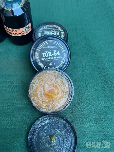 цена за 100гр 6 евро смазка гой 54 , течна смазка РЖ 0,330 мл 6 евро на минерална основа от стария материял пройзводсво на съветсккия съюз създадена да запазва оръжието винаги в перфектно състояние без да създава предпоставки за корозия или промяна в структората на оръжейната стомана